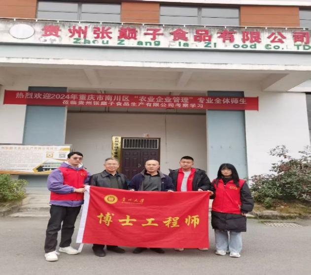 2025129日,贵州大学酿酒与食品工程学院苏伟教授带队的“食万里·砺志行·兴乡土”博士工程师团队,深入贵州遵义张癫子食品有限公司开展“正大杯”第十六届全国大学生市场调查与分析实地调研,团队成员由酿酒与食品工程学院数学与统计学院的研究生组成。