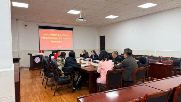 2025年11月25日下午,中粮可口可乐饮料(贵州)有限公司生产技术部兼安全质量环保部总监周林林、人力资源经理陈辉、品控经理周小力、公关传播部经理霭瑛一行来学院交流。学院党委书记凌琦,党委副书记、院长黄永光,副院长秦礼康,食品科学与工程教研室主任苏伟、副主任朱勇及教师代表参加座谈。