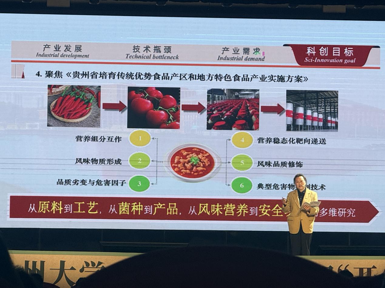 “从土坛子到智造线,是科技人员‘把论文写在贵州大地上’的生动实践!”曾老师展示的贵州南山婆食品加工有限公司智能产线“一键酿酸”标准化工艺,是贵大师生用数据“转译”经验、用科学“诠释”风味、用技术“护航”传统食品的最佳范例。以科创助力酸汤产业高质量发展,不仅是农民丰收后的希望,是乡村振兴的重要抓手,更是贯彻落实习近平总书记关于“做好‘土特产’文章”“推动地方特色资源优势转化为产业优势”“培育具有持久市场竞争力的特色主导产业”等重要指示的具体实践。她鼓励学生:“要坚定地将科技创新与产业需求深度融合,坚持、坚守、坚信科创赋能的核心路径,凡事都用心、用情、用力去做,凡事都做到细致、精致、极致,哪有干不好的科研,哪有做不好的工作?小酸汤也能做出大文章!”